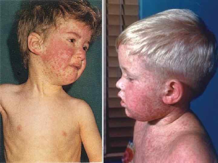 Особенности течения кори у взрослых Протекает тяжело - выражен синдром интоксикации: высокая лихорадка, анорексия, рвота, головная боль, нарушение сна, адинамия - Энантема: широко рапространяется по слизистым оболочкам, пятна многочисленные - Экзантема: количество элементов больше, склонность к слиянию больше. Встречается геморрагическая петехиальная сыпь - Чаще развиваются ослолжнения - Риск врожденных пороков до 85% при инфицировании 9 -12 -недельного зародыша от матери во время беременности.