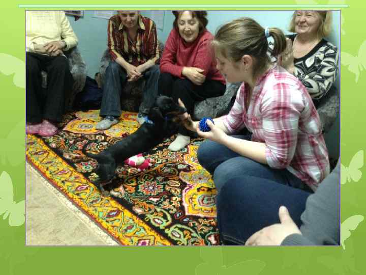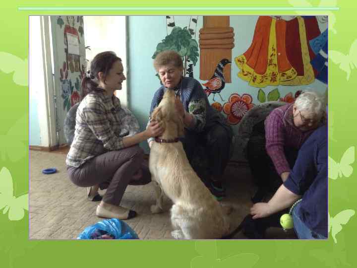 5. Основные группы детей и взрослых, в отношении которых уместна канистерапия. В первую очередь это взрослые и пожилые люди, • у которых либо имеется дифицит общения, либо необходима реабилитация после перенесенного заболевания (например, инсульта), далее – дети, проживающие в закрытых заведениях и имеющие отклонения в поведенческих чертах, обусловленные именно местом проживания; дети с диагнозами : ЗПР, ЗУР, болезнь Дауна, детский церебральный паралич, аутизм, эпилепсия, синдром дефицита внимания и гиперактивности; взрослые инвалиды с перечисленными диагнозами, выросшие из категории детства, но нуждающиеся в коррекции поведения и общении. •