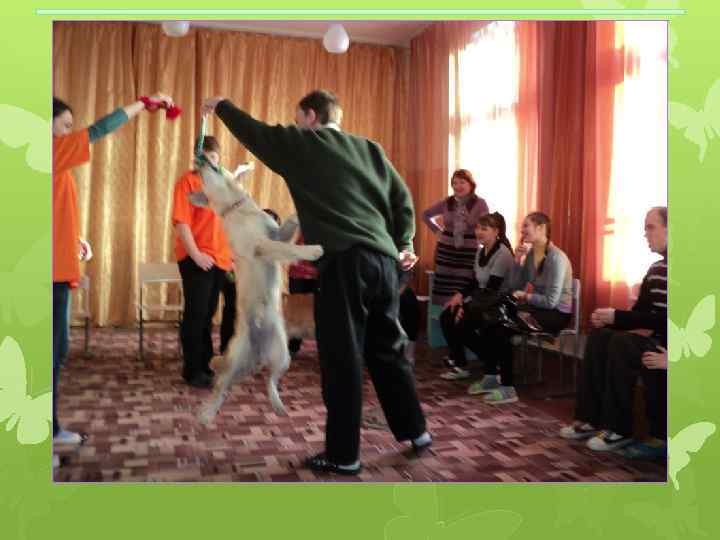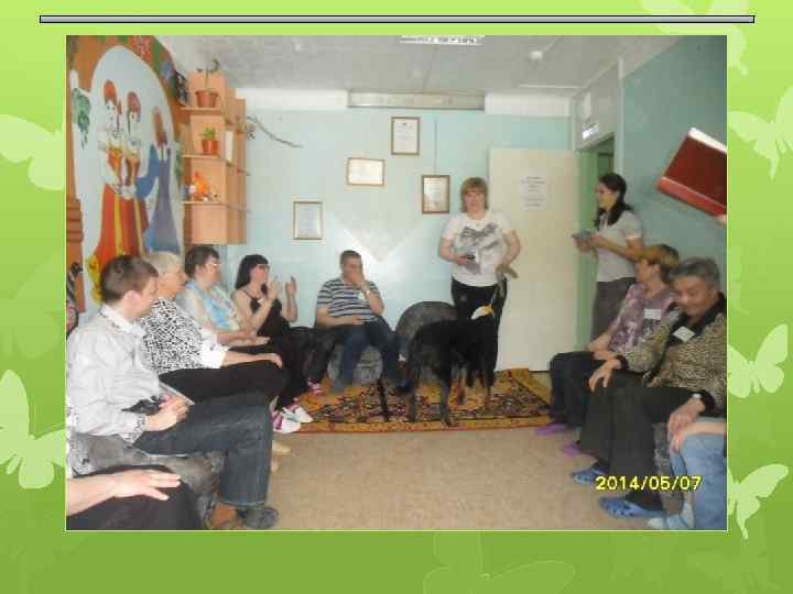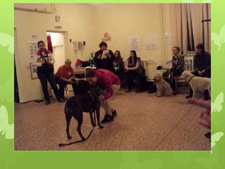 3. ТЕСТ В. Общение. Группа людей (2 -5) стоят в комнате. По возможности с ними стоят собаки (1 -2). Также в комнате, кресла-каталки, ходунки, клюки и т. д. • Вы и собака на ослабленном поводке проходите через группу людей и собак в комнате. • Собака может находиться, как слева, так и справа от Вас. • Группа людей обходит около и вокруг Вас, они тихонько разговаривают. • Вы с собакой по команде «Рядом» , обходите группу слева, затем справа • Вы с собакой проходите через группу (не на прямую, а змейкой) 3 раза.