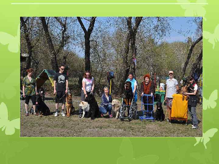 9. ТЕСТ И. Человек – собака, реакция. • Группа людей 2 -5 человек стоят в комнате. По возможности с ними стоят1 -2 собаки. Кресла-каталки, ходунки, клюки и т. д. , не используются в этом тесте. Дрессировщик и собака подвергаются следующим испытаниям: • Хозяин с собакой на ослабленном поводке проходите через группу людей. • Собака может находиться с любой стороны от хозяина • Металлический поднос, роняется позади хозяина и собаки • Люди громко смеются, разговаривают и хлопают в ладоши • Один из людей пробегает мимо хозяина и собаки • Один из людей громко спорит с другим • Хлопки зонтиком, закрывая и открывая зонт несколько раз подряд