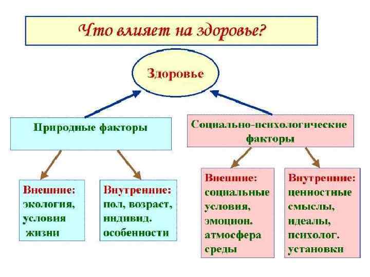 Факторы, влияющие на уровень здоровья: физические, социальные, образ жизни.