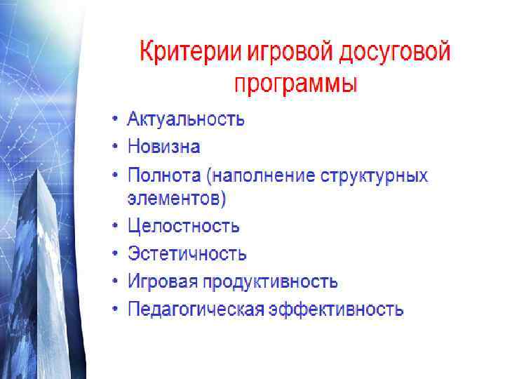 Принципы разработки и реализации игровой программы Коллективное взаимодействие Синтетичность Целостность Зрелищность Динамичность Креативность