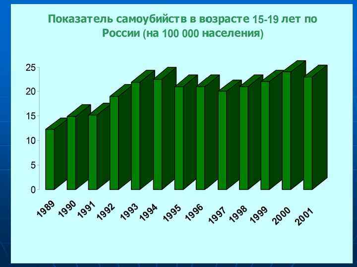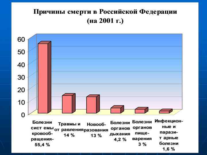 Среди травм и отравлений на 2001 г. n n n Самоубийства – 57, 1 тыс. Убийства – 42, 6 тыс. Автотранспортные травмы – 40, 5 тыс. Отравления алкоголем – 37, 8 тыс. Случайные утопления – 17, 6 тыс.
