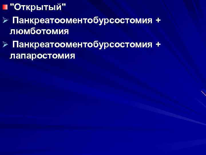 Методы дренирующих операций при панкреонекрозе: Ø Закрытый Ø Открытый ü Полуоткрытый