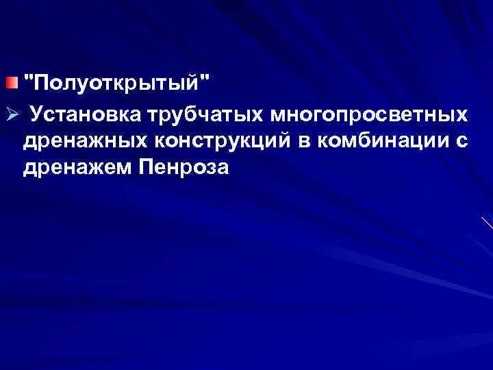 "Полуоткрытый" Ø Установка трубчатых многопросветных дренажных конструкций в комбинации с дренажем Пенроза