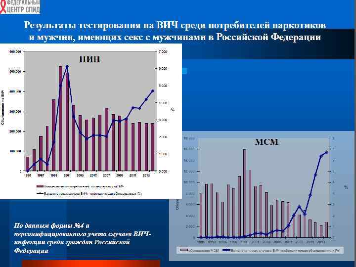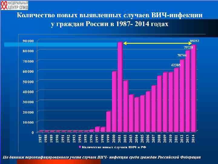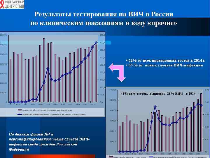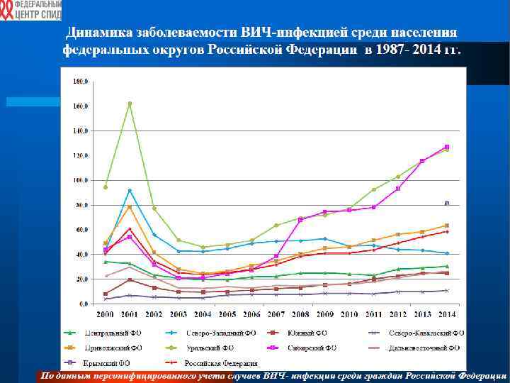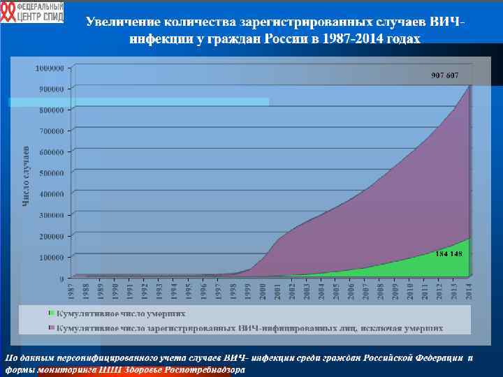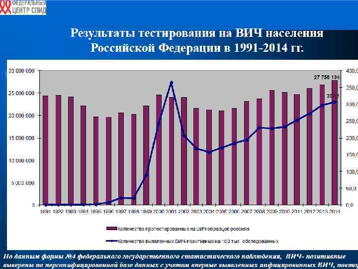 Акад. В. В. Покровский В течение последнего времени в Российской Федерации наблюдается: рост общего числа ВИЧ-позитивных граждан, увеличение числа новых случаев ВИЧ-инфекции и увеличение числа смертей, связанных с ВИЧ; поражение ВИЧ-инфекцией в основном населения РФ в возрасте 25 -40 лет, что создает реальную демографическую и экономическую угрозу; распространение ВИЧ-инфекции преимущественно среди гетеросексуальной части населения как при употреблении наркотиков, так и при половых контактах между мужчинами и женщинами.