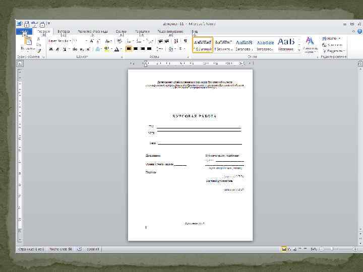 Оформление работы Формат страницы – А 4, шрифт – 14, межстр. интервал – 1, 5. Выравнивание по ширине, отступ слева – 1, 5. Текст следует размещать на одной стороне листа бумаги с соблюдением следующих размеров полей: левое – 30 мм, правое – 15 мм, верхнее – 20 мм, нижнее – 20 мм.