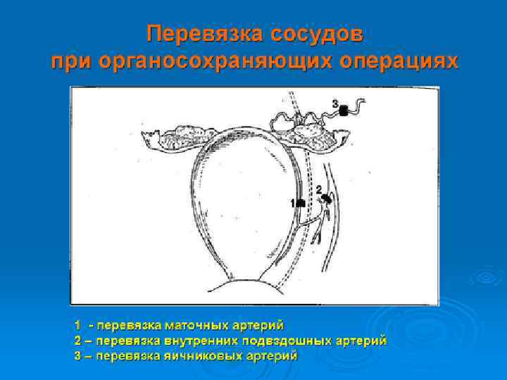Последовательная деваскуляризация матки Перевязка яичников артерий Перевязка маточных артерий по О´ Лири Tamizian (2001)