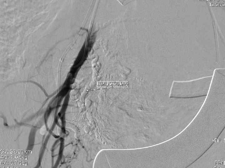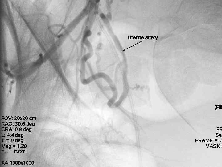 Эмболизация маточных артерий - • После установки катетера через него вводятся эмболизационные частицы. Среднее время продолжительности процедуры 15 -20 минут. В редких случаях особенности строения маточной артерии могут потребовать большего времени для установки катетера. - Операция проводится ангиохирургом.