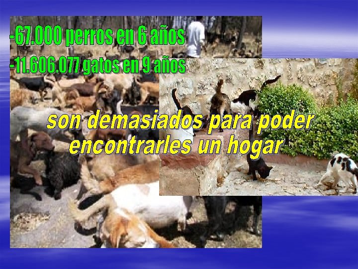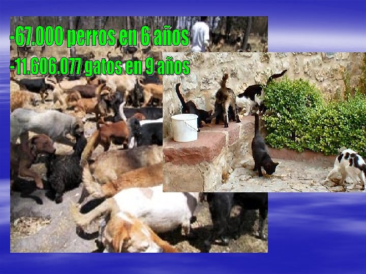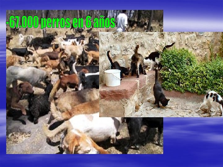 CUIDADO ANIMALES § § § Revisión veterinaria diaria Limpieza patios y cheniles Desparasitaciones internas (cada 3 meses) Analíticas leishmania (6 semanales) Baños antiparasitarios (prim-otoño) Otros (cepillado, corte pelo, baños…)