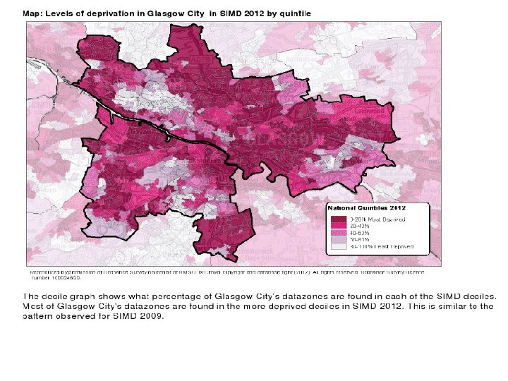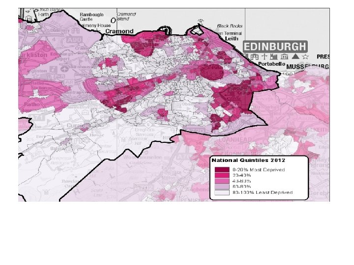 The ‘Glasgow Effect’ Reduced life expectancy in Glasgow (e. g. males 5. 4 years lower than in Edinburgh in 2001) Relates to social deprivation, and is particularly accounted for by suicide, drug deaths and alcohol liver disease Leyland et al