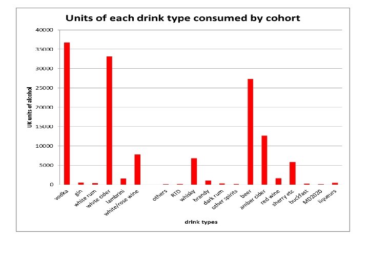 Future work • Linkage with NHS hospital and with Deaths Register (nb 22 deaths already documented in in first 3 months of recontacting) • Trends in drink purchasing against background UK economic changes (incl benefits) and marketing fashions • Profiling the drinker resistant to treatments/ and changes in the sourcing of alcoholic beverages in the UK • ? ? effects of MUP