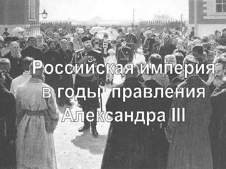 Начало царствования Цель правления Александра III: • уничтожение общественно-политического движения в России, • очищение государства от «чуждых» западных влияний возвращение к теории «Официальной народности» Заседание Госсовета 8 марта 1881 г. – отказ от Конституции М. Т. Лорис-Меликова. СОХРАНЕНИЕ САМОДЕРЖАВИЯ К. Д. Победоносцев