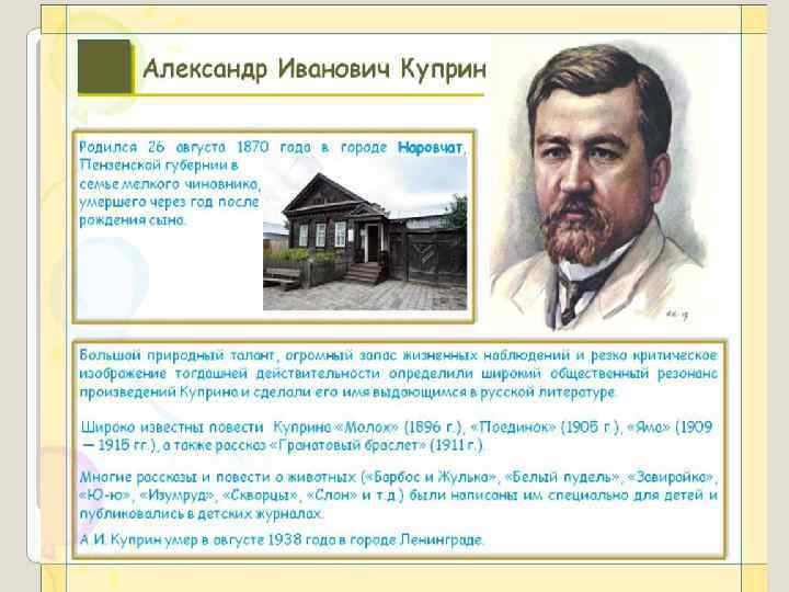 – Так о чем же это произведение? Какова его главная мысль? Что хотел донести до вас автор? – Преданность, верность, дружба – это самое главное в жизни человека. Куприн учит читателей быть человечными, добрыми, благородными по отношению друг к другу и к животным, осуждает черствость и бездушие людей.