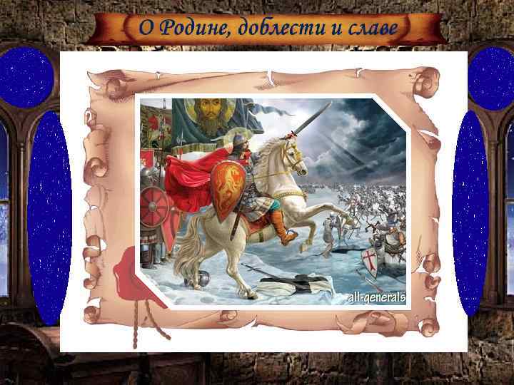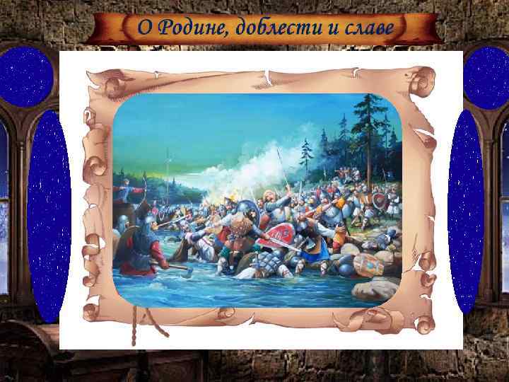О Родине, доблести и славе Не до игр было молодому князю в юные годы. Уже в 15 лет Александр сопровождал отца в походах и участвовал в битвах. АН