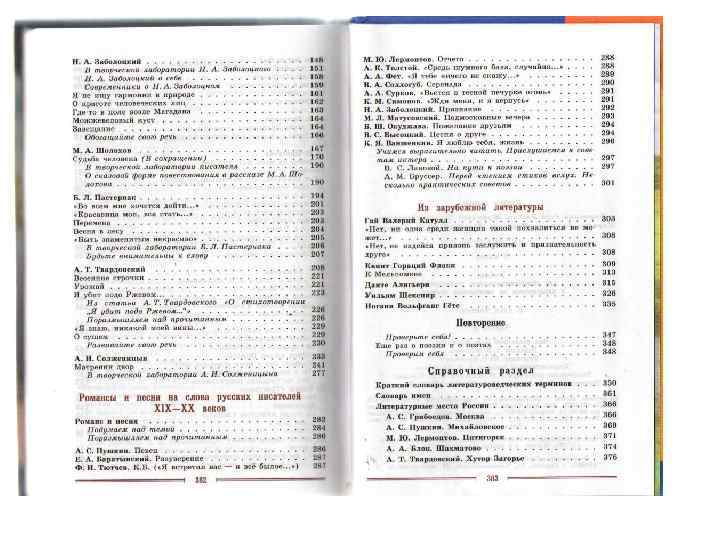 А. А. Галич «Когда я вернусь. . . » ; Ю. В. Бондарев «Выбор» А. С. Пушкин «Во глубине сибирских руд. . . » ; В. Гюго «Отверженные» М. Ю. ЛЕРМОНТОВ «МЦЫРИ» М. Ю. ЛЕРМОНТОВ «ПЕСНЯ ПРО ЦАРЯ ИВАНА ВАСИЛЬЕВИЧА, МОЛОДОГО ОПРИЧНИКА И УДАЛОГО КУПЦА КАЛАШНИКОВА» Э. ХЕМИНГУЭЙ «СТАРИК И МОРЕ» Б. Л. Пастернак «Во всём мне хочется дойти до самой сути. . . » ; Ф. Стендаль «Красное и чёрное» Б. Л. Васильев «Завтра была война» ; А. С. Пушкин «К Чаадаеву» В. Шекспир «Отелло» Б. А. Лавренёв «Сорок первый» В. Т. Шаламов «Последний бой майора Пугачёва» А. С. Пушкин «Анчар» ; В. С. Высоцкий «Притча о Правде и Лжи» В. В. Маяковский «Мама и убитый немцами вечер» ; Э. -М. Ремарк «На Западном фронте без перемен» ; А. Рембо «Зло» Н. А. НЕКРАСОВ «РУССКИЕ ЖЕНЩИНЫ» К. Ф. Рылеев «Иван Сусанин» Дж. Олдридж «Последний дюйм» М. А. Светлов «Гренада» ; К. М. Симонов «Ты помнишь, Алёша, дороги Смоленщины. . . » А. С. Пушкин «Поэту» ; А. Н. Стругацкий, Б. Н. Стругацкий «Понедельник начинается в субботу» М. ГОРЬКИЙ «СКАЗКИ ОБ ИТАЛИИ»