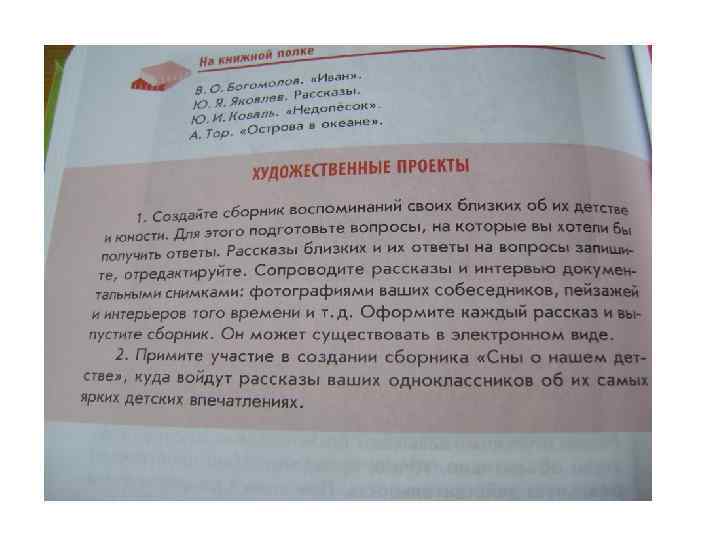 5 класс Тема 2. Мой дом — мой мир А. С. Пушкин. «Зимний вечер» , «Няне» (2 часа) А. П. Чехов. «Гриша» (2 часа) Н. М. Рубцов. «В горнице» (1 час) Проектная деятельность Разработка проекта художественного аудиовидеоальбома «Мой дом — мой мир» Литературно- художественная и аналитическая деятельность Конкретизация представлений учеников о собственном доме. Подбор сравнений и эпитетов, передающих личное отношение ребенка к своему дому. Сочинение рассказов и стихотворений о дорогом и близком. Устные сочинения о доме (своем доме, доме литературного героя, сказочного персонажа) с разных точек зрения — негативной и позитивной.