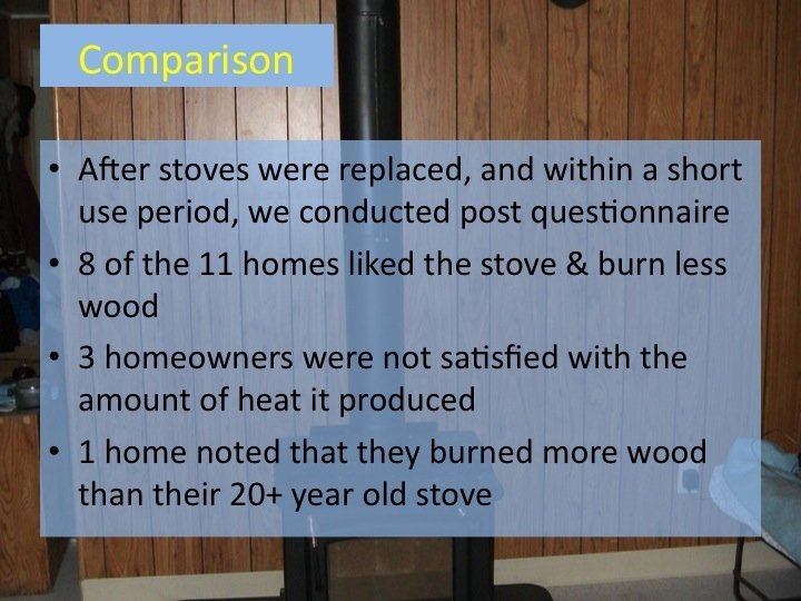 Woodstove Changeout Algaaciq Tribal Government Environmental Program Funding thru ANTHC Community Environmental Demonstration Project Grant
