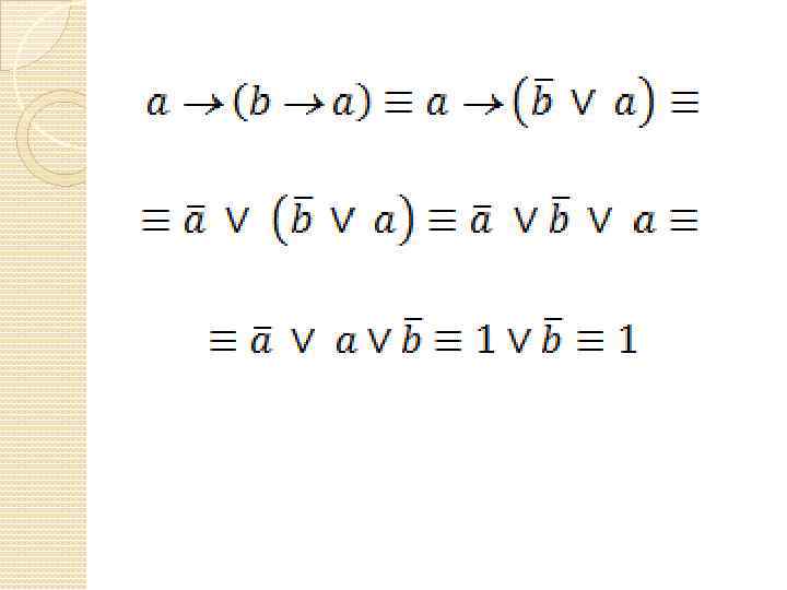 Задача Докажите тождественную истинность формулы a (b a)