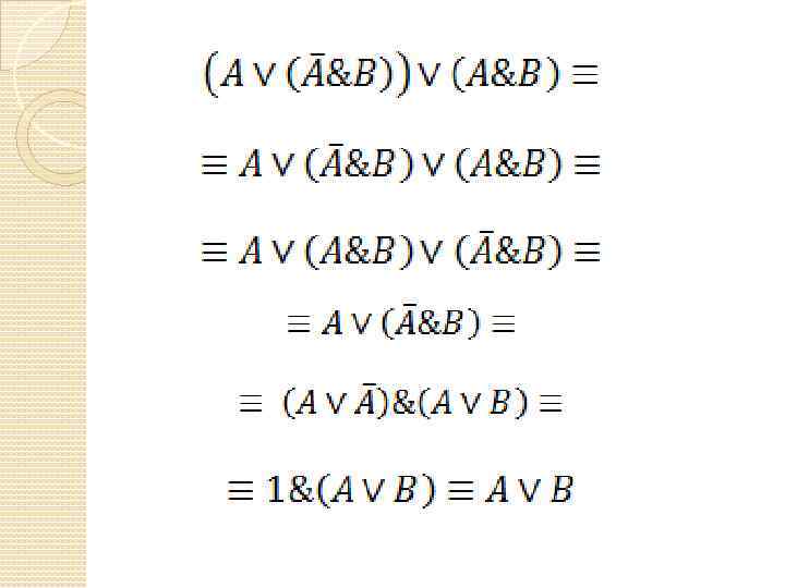 Формулы 2) Если a и b – формулы, то выражения a, a & b, a b тоже являются формулами 3) Других формул нет