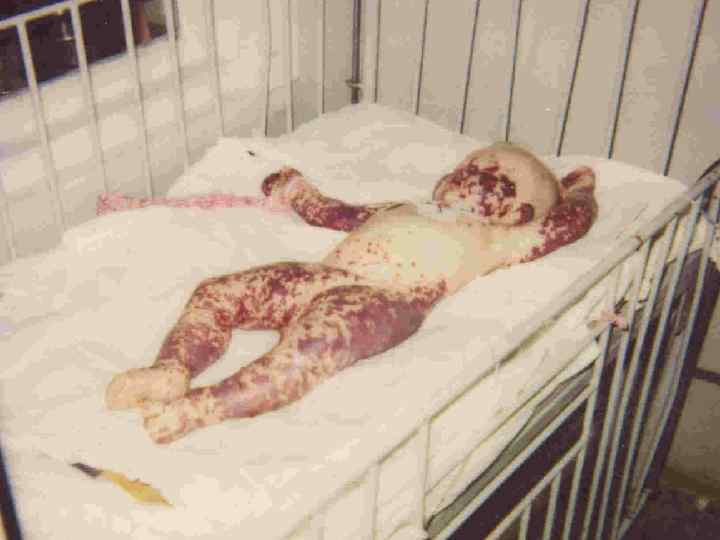 Корь Диффузно расположенная красная макуло-папулезная сыпь с максимумом на лице Девочка, 6 лет. • Гипертермия • Светобоязнь • Сыпь распространилась с лица на туловище и конечности в течение 3 -х дней • Корь подтверждена серологически