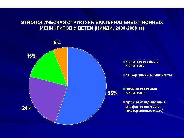 Редкие клинические проявления 12 2. 5 10 8 4. 4 4. 5 % Пневмония Полиартрит 6 Миокардит 1. 1 4 4. 9 4. 5 2 0 менингококкцемия гн. менингит сочетанная форма