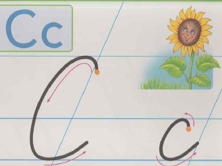 Алгоритм написання рядкової букви с ( «ес» ) 1. Починаємо писати букву нижче верхньої рядкової лінії 2. Ведемо вгору до верхньої лінії робочого рядка 3. Заокруглюємо ліворуч 4. Ведемо вниз на себе, теж заокруглюючи 5. Біля нижньої рядкової лінії заокруглюємо праворуч 6. Торкнувшись нижньої робочої лінії, ведемо вгору 7. Закінчуємо писати близько середини робочого рядка Алгоритм написання великої букви С ( «ес» ) 1. Починаємо писати трохи нижче верхньої міжрядкової лінії 2. Ведемо, заокруглюючи ліворуч вгору до верхньої міжрядкової лінії 3. Заокруглюємо ліворуч 4. Ведемо вниз на себе, теж заокруглюючи 5. Біля нижньої рядкової лінії заокруглюємо праворуч 6. Ведемо вгору 7. Закінчуємо писати близько середини робочого рядка