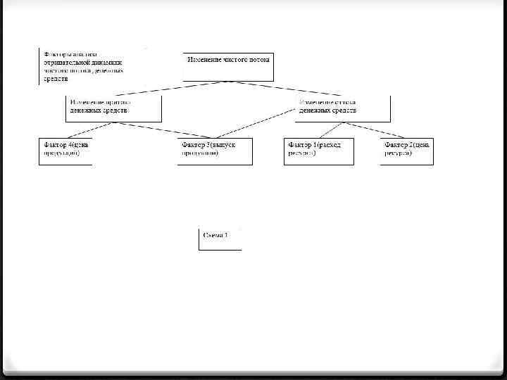 Второй шаг в диагностировании – проведение факторного анализа изменение показателей деятельности. 1. Факторному анализу подвергаются сложные, агрегированные показатели такие , как приток и отток денежных средств. 2. Изменение притока денежных средств может происходить под воздействием 2 основных факторов: üФактора 4(цены на продукцию); üФактора 3(выпуск продукции);