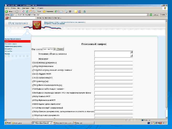 ШАГ 6 "Формулировка запроса" После выбора БД осуществляется переход на страницу (форму) подготовки запроса. Для этого в поле «Основная область запроса» вводятся заранее сформулированные ключевые слова или словосочетания. полезных моделей из последнего бюллетеня» .