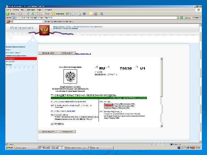 ШАГ 1 В сети Интернет выйти на главную страницу WEB-сайта Федеральной службы по интеллектуальной собственности, патентам и товарным знакам расположенного по адресу: http: //fips. ru/