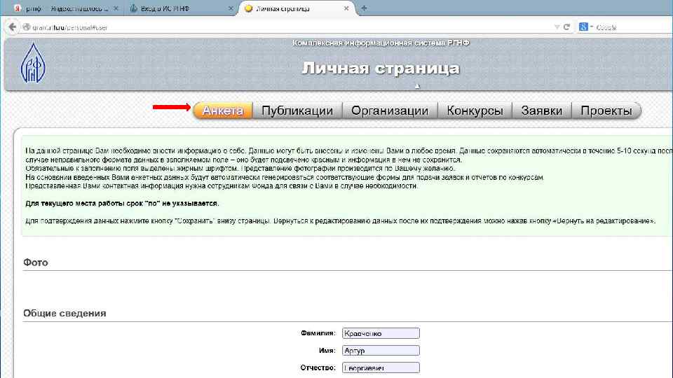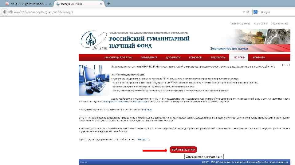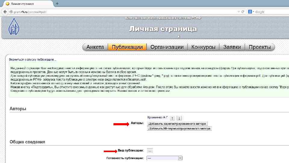 Регистрация в Информационной системе РГНФ