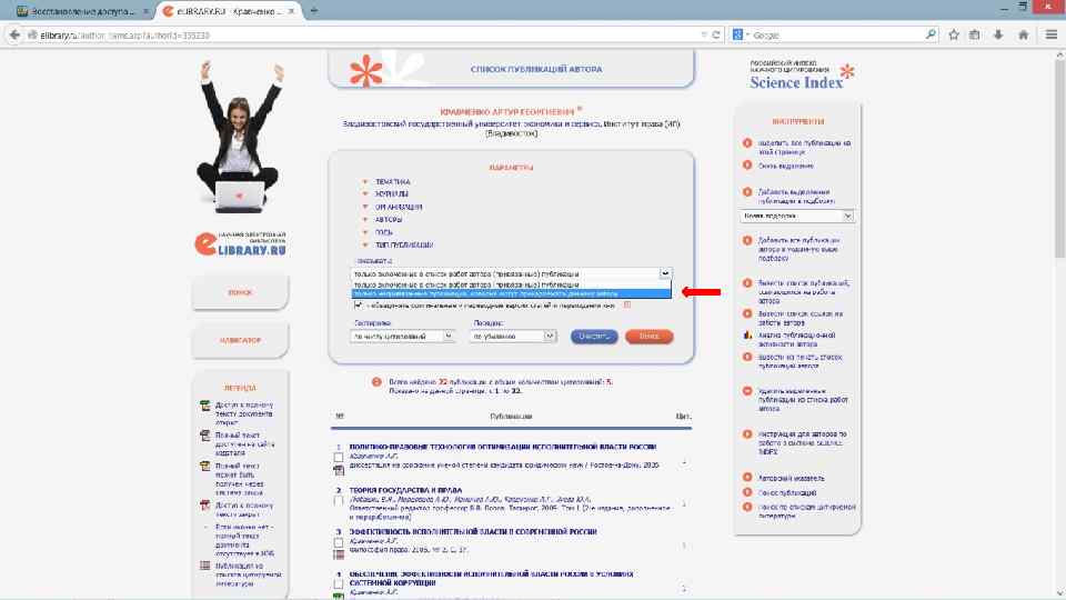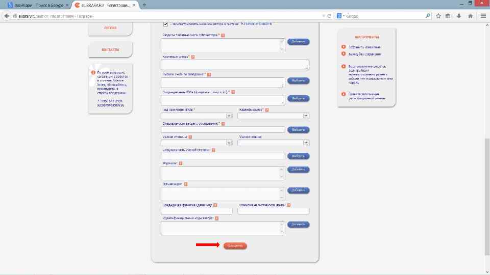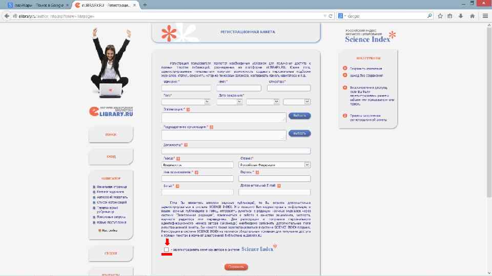 Регистрация и работа на сайте система учета публикационной активности «elibrary»