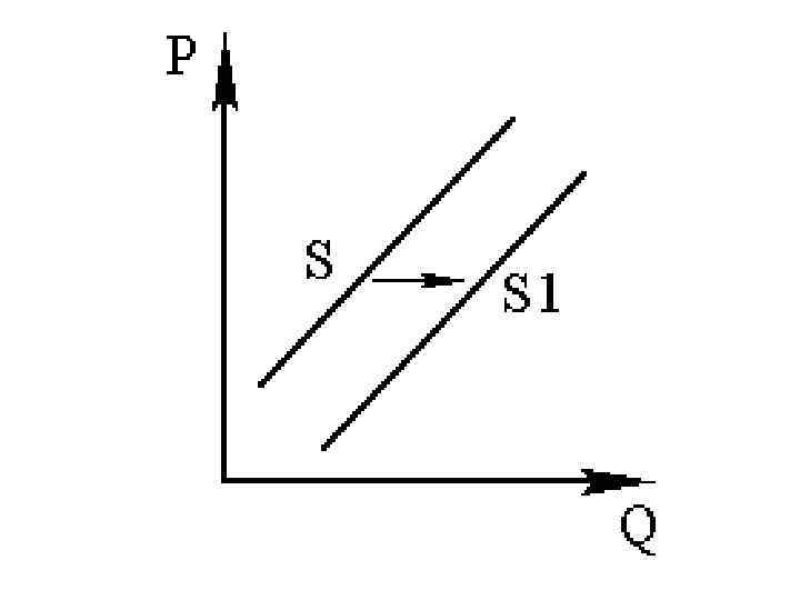 5. Отметить правильные варианты ответа На графике отражена ситуация на рынке кондитерских изделий: линия предложения S переместилась в новое положение – S 1 (P – цена товара, Q – количество товара). Это перемещение может быть связано, прежде всего, с 1) открытием нескольких новых предприятий 2) выдачей льготных кредитов кондитерским предприятиям 3) увеличением доходов потребителей 4) увеличением налогов, уплачиваемых фирмами 5) В стране установилась неблагоприятная экономическая ситуация