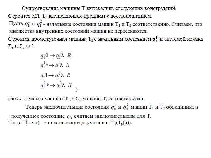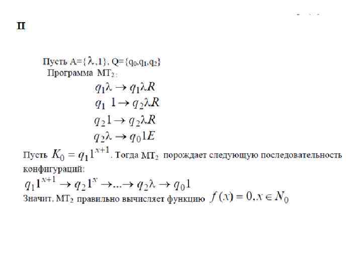 Основные типы алгоритмических моделей • Алгоритм как некое детерминированное устройство - абстрактные машины. Машина Тьюринга и машина Поста. • Алгоритм как процедура вычисления некой числовой функции. • Алгоритм как последовательность преобразований цепочек в каком-либо алфавите. (Комбинаторные операции над словами)