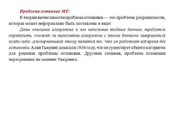 • Тезис Поста - “Всякий алгоритм представим в форме машины Поста”. • Алгоритм (по Посту) — программа для машины Поста, приводящая к решению поставленной задачи. • Если задача имеет алгоритмическое решение, то она представима в форме команд для машины Поста.