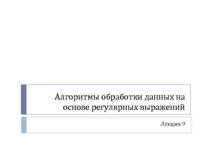Алгоритмы обработки данных на основе регулярных выражений Лекция 9