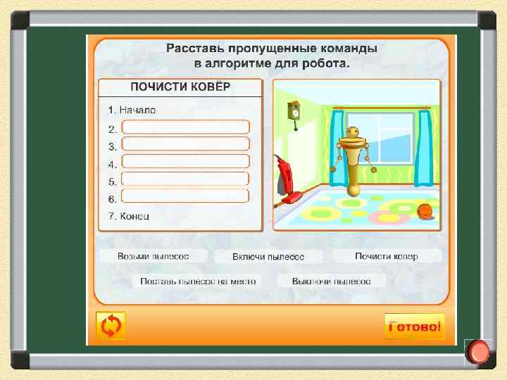 Алгоритмы в нашей жизни • • Выбрать катушку с нитью, Отрезать от катушки нить Вдеть нить в иголку Завязать на конце нити узелок. Продеть иглу через ткань (с из наночной стороны) и через отверстие пуговицы. Продеть иглу через другое от верстие пуговицы и ткань. Повторить пункты 6 раз. Отрезать остатки нити.