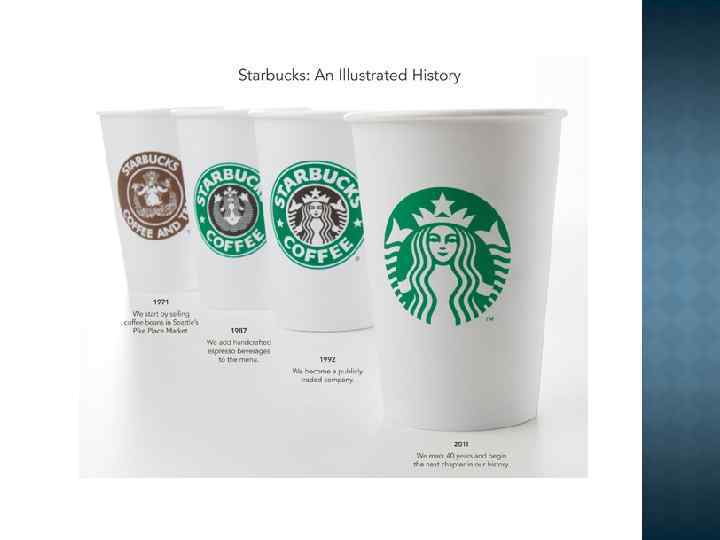 In 2011, Starbucks introduced a new identity, branding, and logo, going back to their original green success.