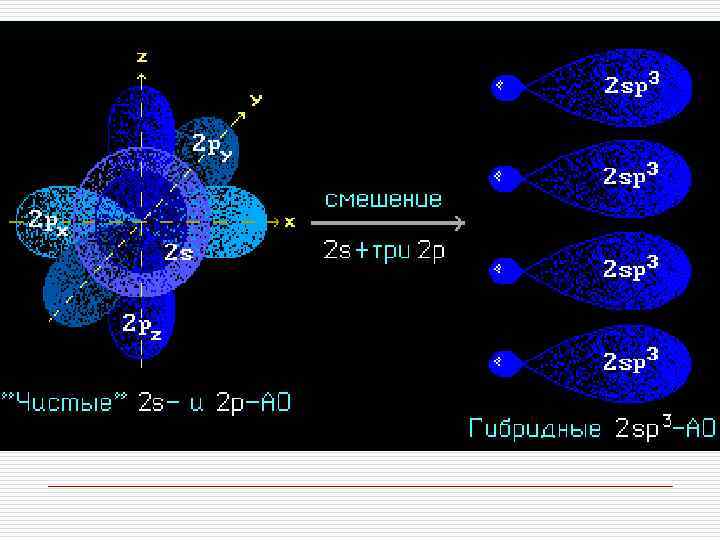 o Гибридизация АО - это взаимодействие (смешение) разных по типу, но близких по энергии атомных орбиталей данного атома с образованием гибридных орбиталей одинаковой формы и энергии. o Такая связь прочнее связи, образованной электронами негибридных АО, за счет более эффективного перекрывания.