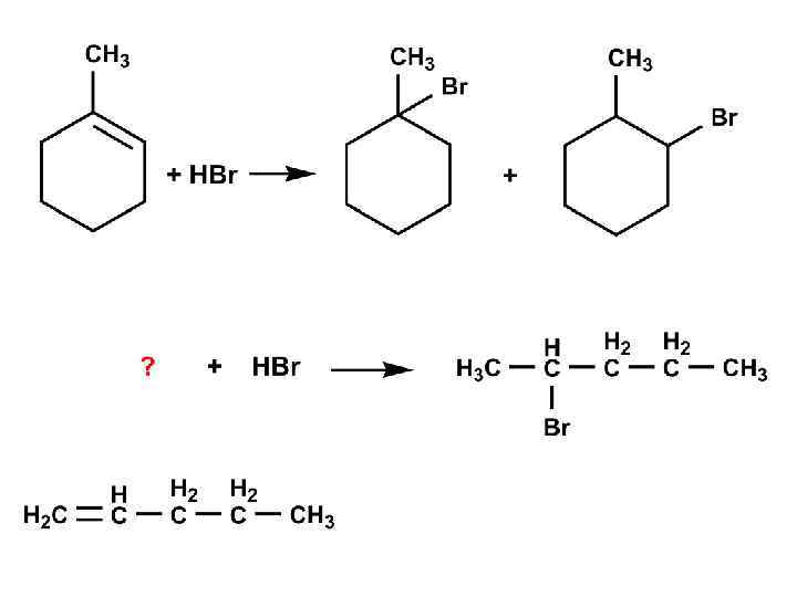 HBr, H+ H 2, Pd HBr, H 2 O 2, h H 2 O, H+ Br 2 1. BH 3, 2. H 2 O 2, -OH Br 2, CH 3 OH (избыток) CH 3 OH