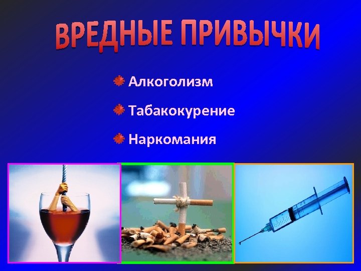 Алкоголизм Табакокурение Наркомания