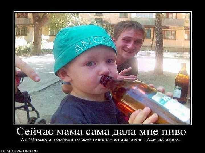 Каждый третий подросток в возрасте 12 лет «балуется» пивом, а в составе 13 -летних – двое из каждых троих, в том числе девочки… 90% детей в возрасте 13 - 15 лет употребляют алкоголь