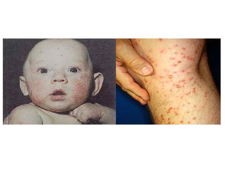 Виды аллергий: пищевая, сезонная, холодовая. Пищевая аллергия вызвана одним из пищевых аллергенов, проявления, как правило - кожные: зуд, высыпания на коже. Сезонная аллергия или сенная лихорадка - реакция организма на природные проявления, связанные со сменой сезонов. Как правило возникают в период цветения луговых трав (отсюда название "сенная лихорадка"). В случае, если невозможно полностью прекратить контакт с аллергеном, назначается комплексная терапия, основным компонентом которой являются противоаллергические препараты третьего поколения. Холодовая аллергия проявляется зудом, покраснением, иногда отеками отдельных участков кожи. Иногда может сопровождаться затруднением дыхания, вызванного бронхоспазмом. Атопический дерматит Атонический дерматит или, как его называли, ранее нейродермит—хроническая рецидивирующая аллергическая патология, выражающаяся зудом и высыпаниями на коже, а также иными дерматологическими проявлениями.