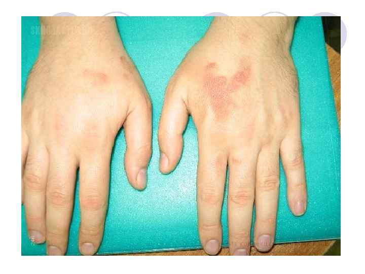Аллергические реакции на коже. l На коже : протекают в форме контактного дерматита. l Причина: –воздействие антибиотиков (пенициллин), антисептических растворов, латекса (перчатки), акрилатов. l Меры профилактики: Использование защитной спец. одежды, масок, перчаток без латекса, точное соблюдение инструкций по технике безопасности при работе с антисептиками , акрилатами, дез. растворами.