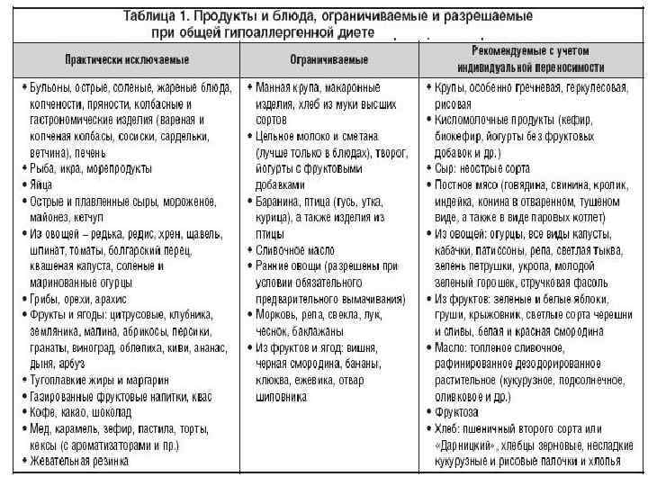 Все эти продукты на период острого проявления всей симптоматики болезни из ежедневного меню полностью исключаются, необходимо отказаться от полуфабрикатов, продуктов, содержащих пищевые добавки, консерванты и различные ароматизаторы. Простые в приготовлении рецепты с минимальным набором продуктов должны постоянно присутствовать на столе. В период обострения нужно свести к минимуму потребление соли, а значит и копченой рыбы, колбас, маринованных продуктов. Соль способствует усилению проявлений аллергических реакций. Таким же свойством обладают и алкогольные напитки. Меню при аллергии должно составляться с учетом преимущественного использования растительной пищи. Достаточное поступление в организм жидкости также помогает быстрее освободить органы пищеварения от скопившихся токсинов. Из жидкостей рекомендованы свежеотжатые соки, отвар шиповника, самостоятельно приготовленные и желательно несладкие компоты. Для ежедневного употребления выбирают те рецепты, где не используется большое количество специй. Горчица, хрен, чеснок, перец усиливают выделение медиаторов воспаления и таким образом провоцируют развитие симптомов непереносимости
