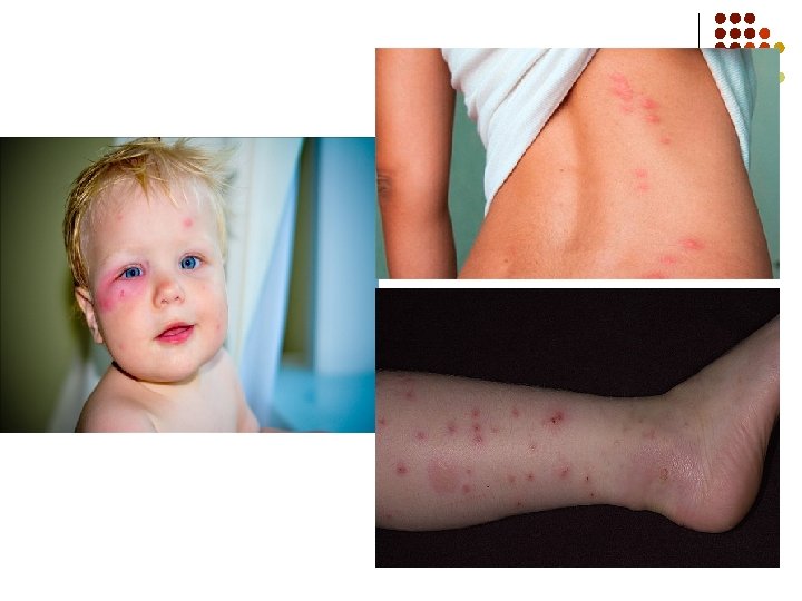 Классификация инсектной аллергии По типу реакции, возникающей при контакте с насекомыми и их метаболитами l По способу попадания инсектных аллергенов в организм Человека Аллергические реакции l l Токсические реакции Прямое раздражающее действие щетинок, шипов и других частей тела насекомого l Со слюной - при укусах кровососущих l l С ядом - при ужалении Ингаляционный - при попадании l Контактный – при соприкосновении с перепончатокрылыми насекомых чешуек тел, частиц хитинового покрова и метаболитов насекомого в домашней пыли и профессиональном контакте насекомыми и / или продуктами их жизнедеятельности