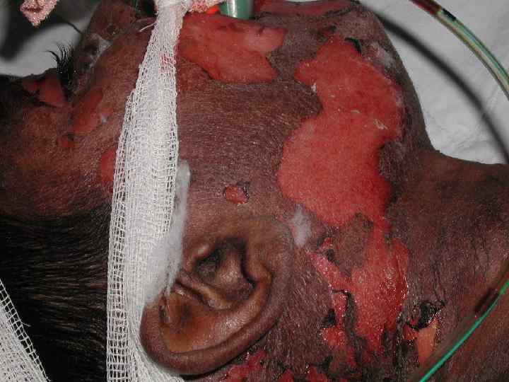 Дерматиты от высокой температуры Общее состояние больного, особенно при распространенных ожогах сильно страдает. Помимо сильных болей в обожженной поверхности появляется состояние сильной нервной возбудимости, анурия, гематурия. В первые часы после ожога больной может погибнуть от шока, на 2 -3 день - от отравления продуктами распада.