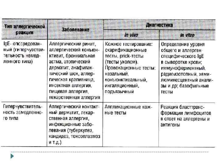 3) Провокационные тесты Методы диагностики, основанные га реакциях, ктр возникают при контакте шокового органа с аллергеном Виды: q Назальный тест – бытовые, эпидермальные, пыльцевые аллергены для выявления алл-го ринита (в один носовой проход капают контроль, в другой аллерген) q Конъюктивальный тест – диаг-ка алл-го конъюктивита q Сублингвальный тест – пищевые и лекарств. аллергии q Ингаляционный тест – БА (выявление этиологически значимых аллергенов, оценка эфф-ти медикаментозного лечения, опр-е проф. пригодности) q Оральный тест – пищевые аллергии (за 2 -3 сут из рациона исключают иссл-й продукт, затем вводят снова) – оценивают общее состояние и состояние ЖКТ q Внутрикожный тест с аутологичной сывороткой крови – аутоимм-я крапивница в период обострения q Диагностика холодовой крапивницы – холодовая проба с аппликацией кубика льда