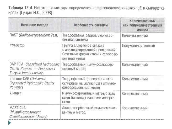CAST – cellular antigen stimulation test Метод основан на опр-ии сулифидолейкотриенов (LTC 4, LTD 4, LTE 4), секретируемых примированными ИЛ-3 Бф под действием аллергенов С помощью этого метода можно опр-ть наличие аллергии и псевдоаллергии, поскольку ЛТ синтезируются и в случае псевдоаллергии, выявить причинно-значимые аллергены и наличие аутоанти. Ig. E-ат и ат к FcεR