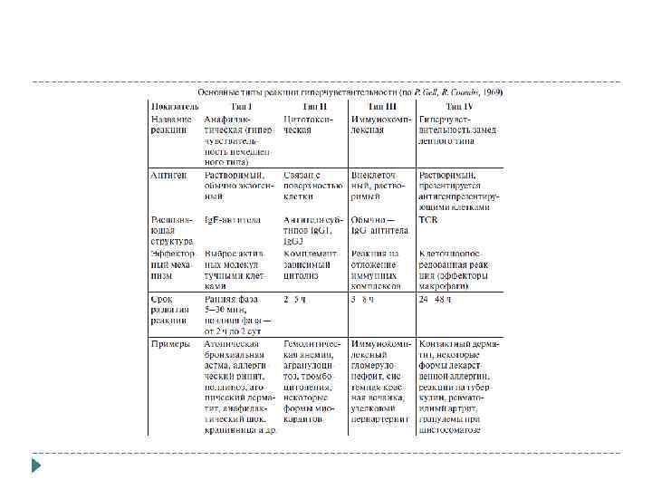 Основные типы реакций гиперчувствельности По П. Джеллу (P. Gell) и Р. Кумбсу (R. Coombs)